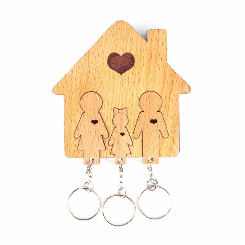 Ключи от дома часто валяются в прихожей или сумке, и многие из нас тратят ценные минуты на их поиски. Ключницы Mimi - это не только практичный, но и очень уютный аксессуар, который украсит интерьер и станет надежным «хранителем» ваших ключей. Набор «Семья с дочерью» станет замечательным подарком на новоселье - помимо самой ключницы из качественной древесины, в него входят три фигурных брелка, которые вставляются в прорези на корпусе. Теперь ключи всегда будут под рукой, и вы не перепутаете комплекты.