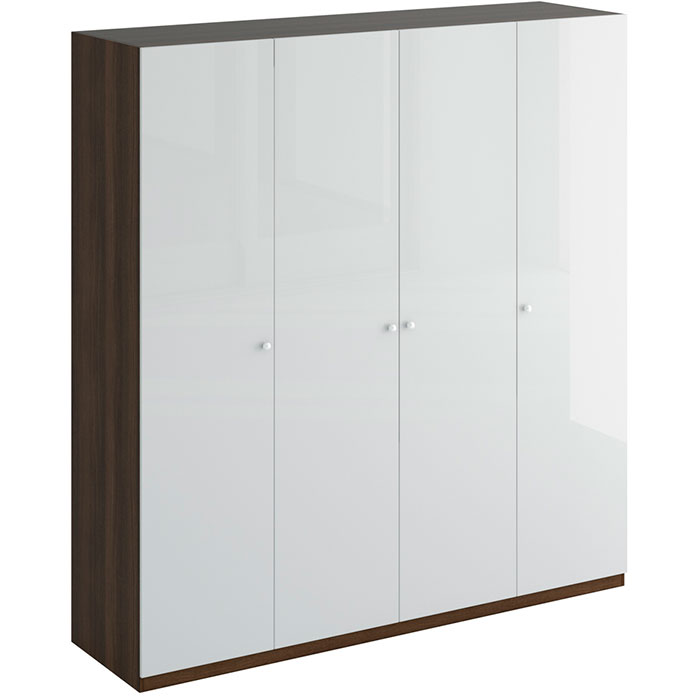 Шкаф Uno четырехдверный белый глянец с коричневым
