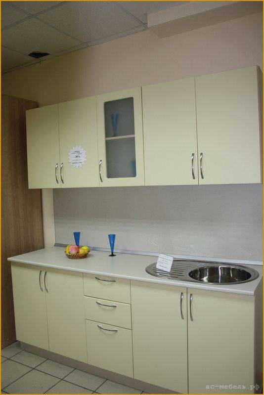 Кухня выполнена из высококачественных материалов, что обеспечивает ее долговечность и надежность. Фасады изготовлены из МДФ, что придает им элегантный внешний вид. Кухня оснащена прочными металлическими ручками, которые легко открываются и закрываются.